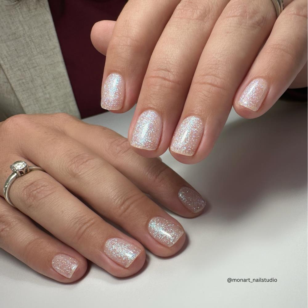Ein irisierender Effekt‑Farbton, der auf den Nägeln subtil leuchtet und je nach Lichteinfall sanft funkelt. Seraphina verbindet ein feines, strahlendes Schimmerfinish mit kühlen, frostigen Nuancen, die dem Look eine edle, raffinierte Note verleihen.