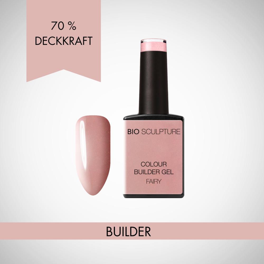 FAIRY ist Teil der neuen Colour Builder Linie – das erste farbige Aufbaugel seiner Art von BIO SCULPTURE. Es vereint Stärke, Pflege und Farbe in einem Schritt und sorgt für eine makellose, selbstglättende Oberfläche, die in nur 30 Sekunden LED-gehärtet ist. Für ein extrem dünnes, aber dennoch robustes Ergebnis, das jeden Nageltyp unterstützt.