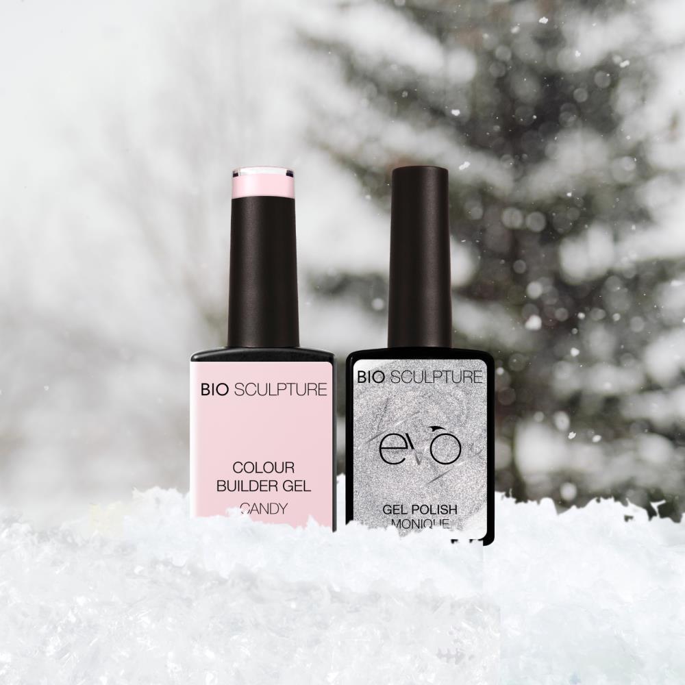 Colour Builder Candy: Ein transparentes, sanftes Hellrosa mit kühlem Unterton, das als feine, elegante Basis dient. Monique: Ein silberner Glitzer mit diamantartigem Funkeln, der jedem Nagel einen strahlenden, festlichen Akzent verleiht.