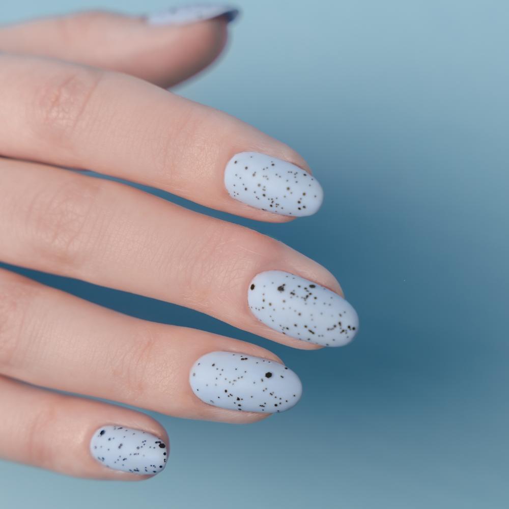 Der EVO Speckled Black Matte Top Coat verleiht Overlays ein samtiges, tiefschwarzes Matt-Finish, akzentuiert durch feine schwarze Sprenkel für moderne Textur.
