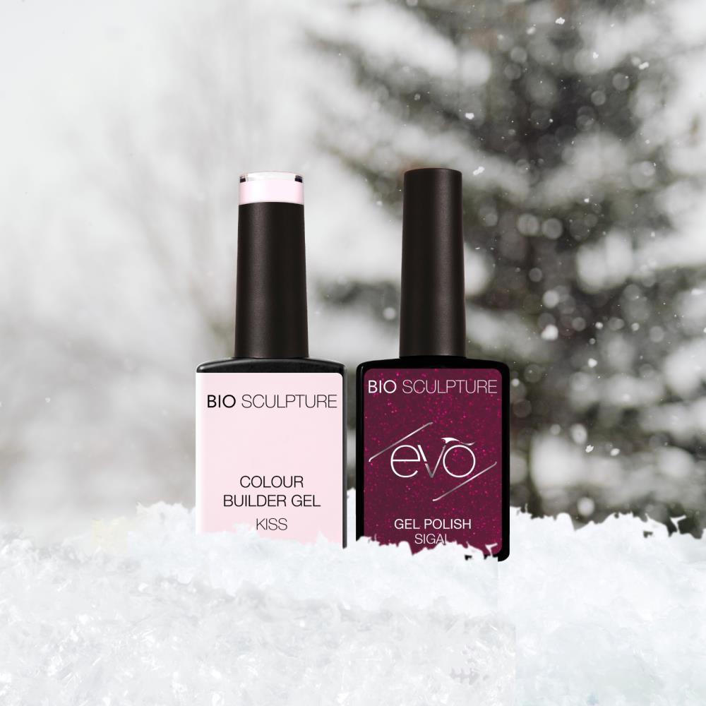 Colour Builder Kiss bildet mit seinem halbtransparenten Lavendel-Rosé und der milchigen Basis einen zarten, eleganten Untergrund, der Deine Nägel natürlich verschönert. Sigal, ein funkelndes Rot mit violettem Unterton, legt sich darüber wie ein leuchtender Sternenschweif und sorgt für intensive, weihnachtliche Akzente.